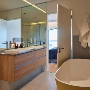 Step into Selene, a one-of-a-kind designer penthouse that blends bold architecture with curated contemporary interiors, offering a sophisticated urban escape in the heart of Cape Town. Perched above the city with sweeping views of the harbour and skyline, this dual-level residence is a sanctuary of style, comfort, and convenience. Three-bedroom penthouse nestled in the heart of De Waterkant, steps away from chic cafés, rooftop bars, and boutique stores.