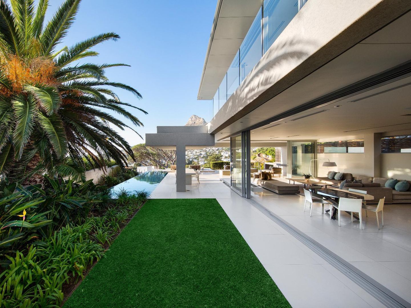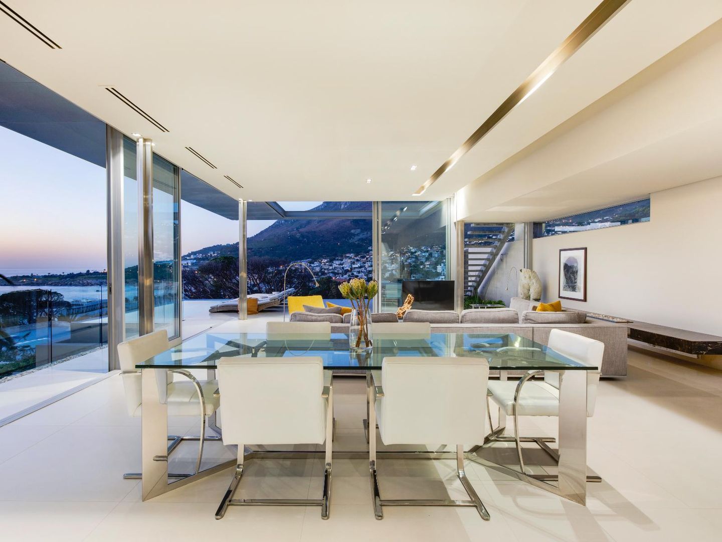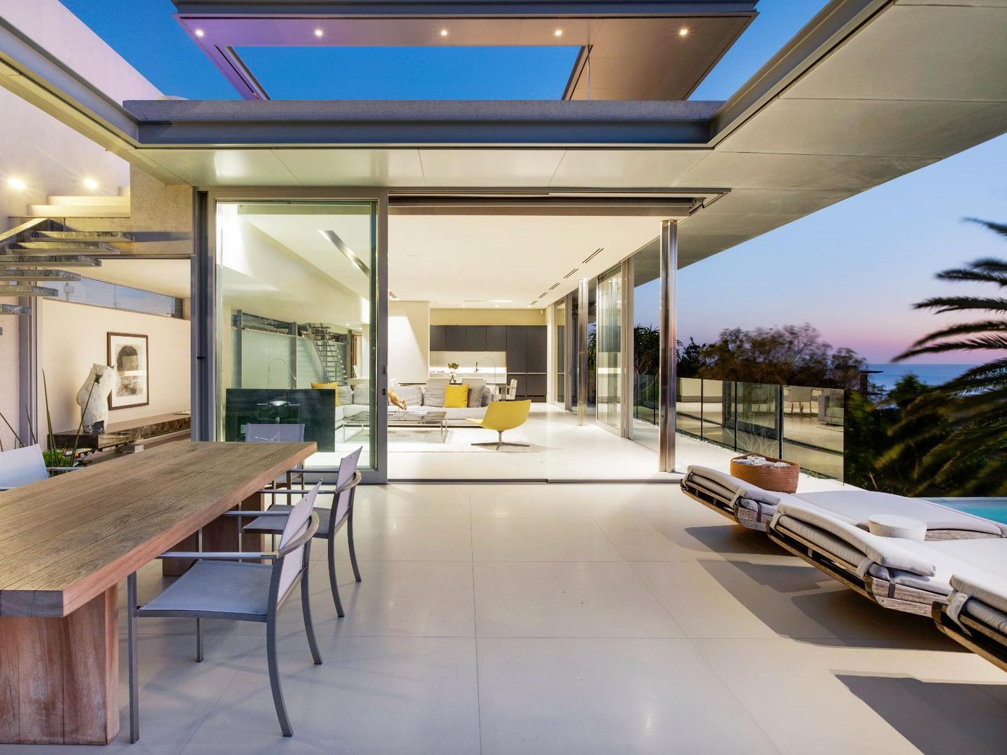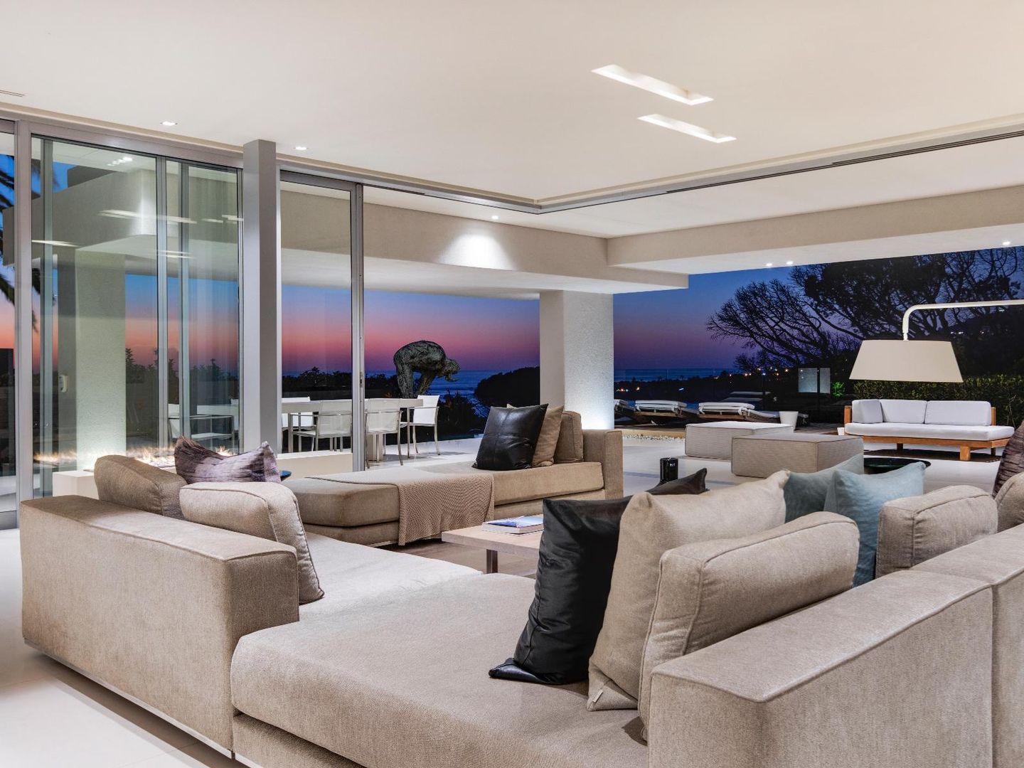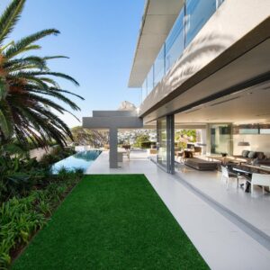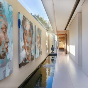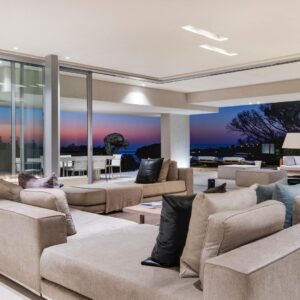 Interior and exterior finishes include contemporary pieces by Arper, Benchmark, Minotti, OKHA, Raun, Royal Botania and Zanottu. The villa showcases an impressive selection of art by renowned South African artists Dylan Lewis, Lionel Smit and Colbert Mashile.