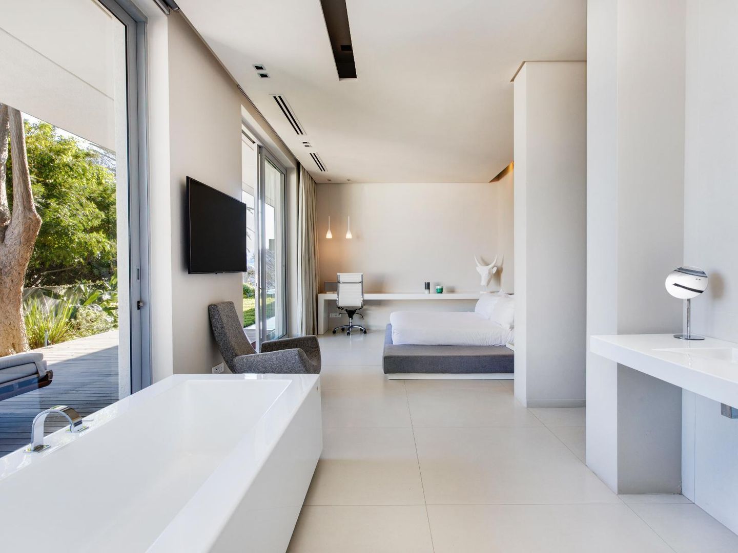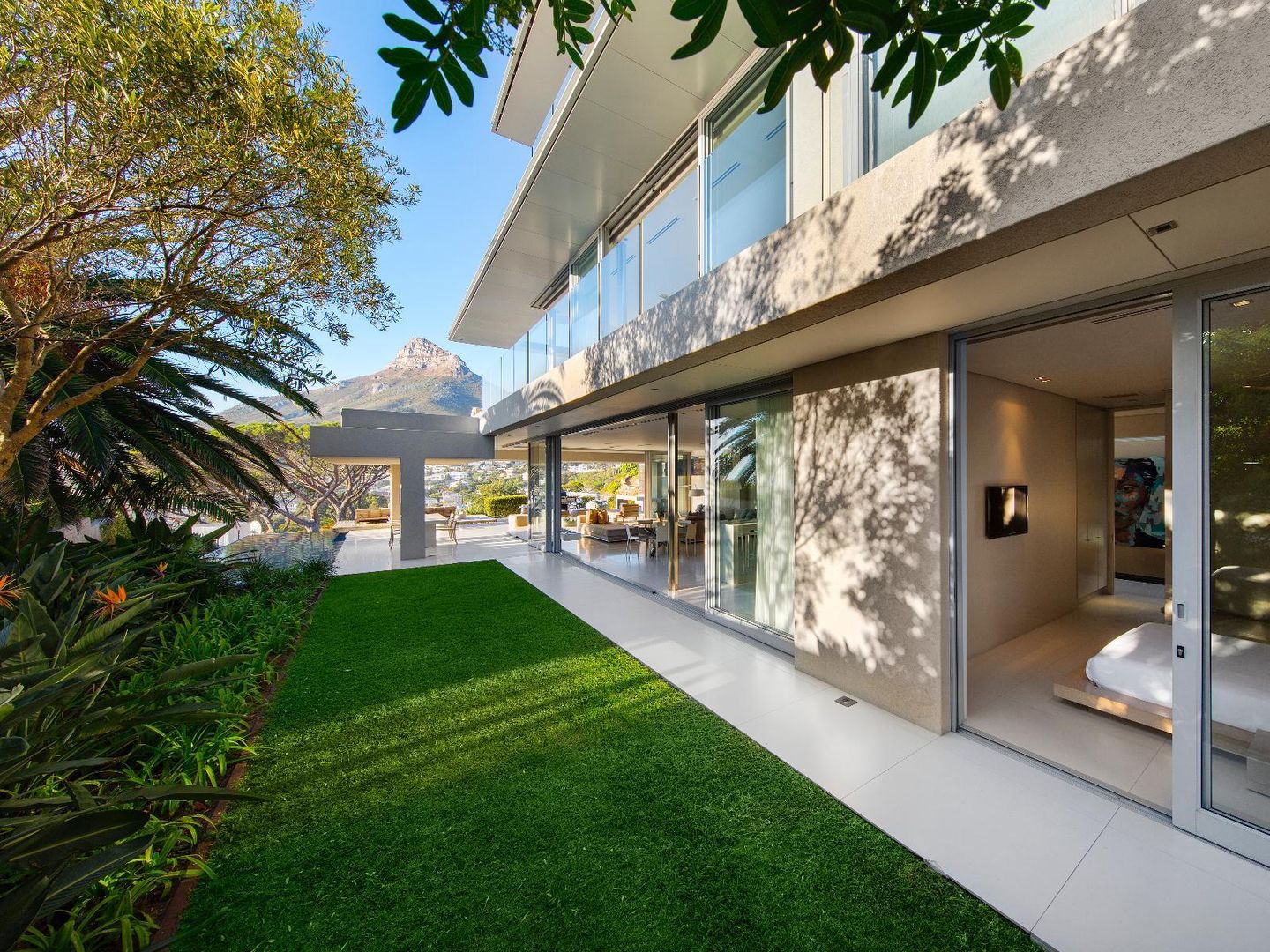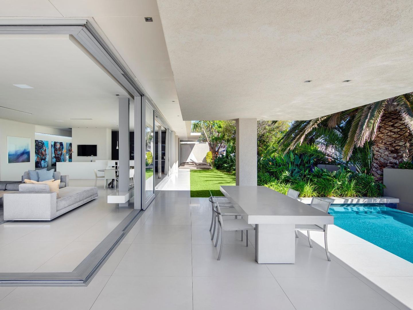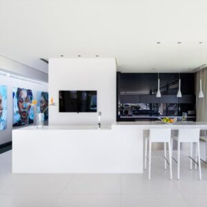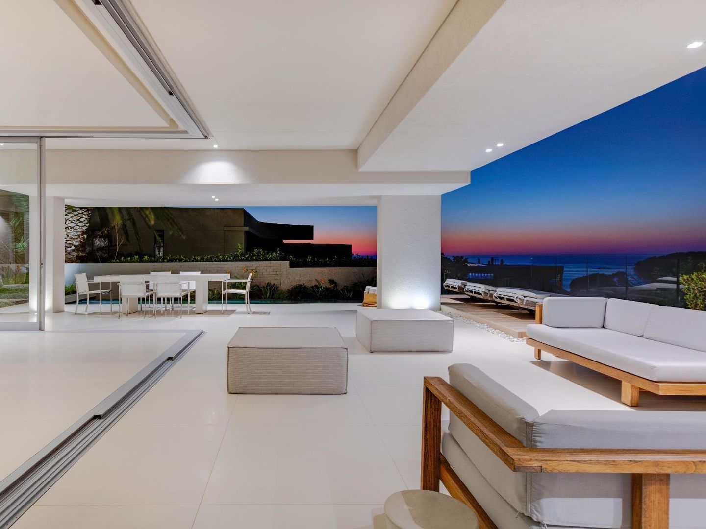 Interior and exterior finishes include contemporary pieces by Arper, Benchmark, Minotti, OKHA, Raun, Royal Botania and Zanottu. The villa showcases an impressive selection of art by renowned South African artists Dylan Lewis, Lionel Smit and Colbert Mashile.