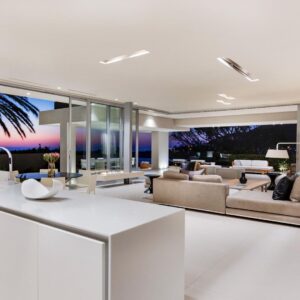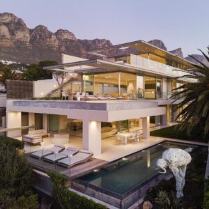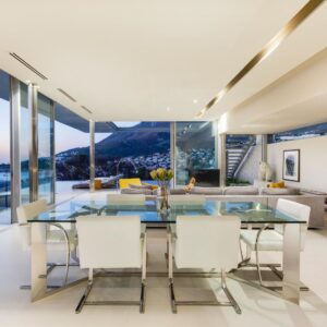 Maintained and preserved in the 2008 era, this SAOTA original remains true to form in retaining both interior and exterior spaces to their authentic award-winning specifications. Set against the magnificent backdrop of the 12 Apostles mountain range, The Crescent combines sleek design with luxurious finishes and offers incredible views of both Lions Head as well as the Atlantic Ocean. The open-plan layout allows for seamless living between indoor and outdoor spaces, featuring floor to ceiling windows and skylights throughout to maximize the natural light and the wrap-around views. Guests will surely appreciate the spaciousness and flow of The Crescent, which is split over three levels, offering seven bedrooms with en-suite bathrooms. Both the ground and first floor level boast a Poggenpohl kitchen, indoor/outdoor dining areas, lounge, terrace, barbeque, sun loungers and a rim-flow swimming pool. The lower level has a fully equipped gym with the latest Technogym cardio and weight training equipment as well as a professional catering kitchen and secure garage parking for two cars.
